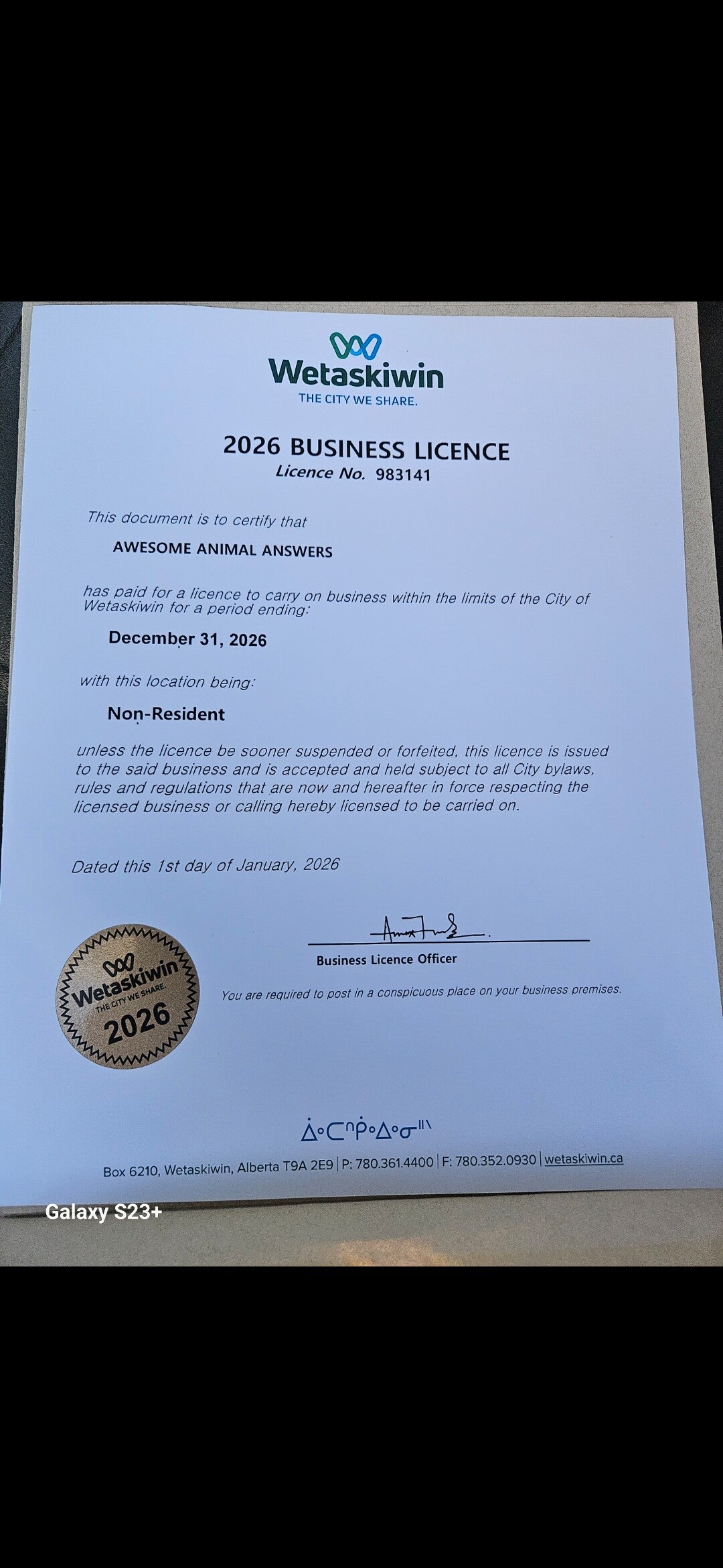 I am dedicated to providing mobile animal nail trimming, Individual obedience training, and advice on Grooming in Wetaskiwin, Alberta, and surrounding areas. This business is newly established as of April 2024, however, my experience in the field is not new. I am here to ensure your pets well being and needs are well taken care of, along with a complete honesty approach for the owners/pet parents. I am pleased to say that I am fully certified, insured and only I strive for the best I can provide. Follow me on Facebook and Tiktok - links at the bottom of this page, and also on other pages.